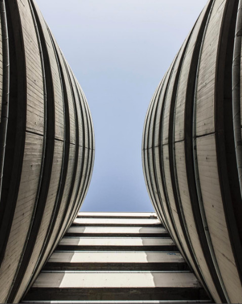 Lerichti’s work aesthetically adheres to the month’s theme, Architecture, as an Instagram star photographer of Swiss architecture. Lerichti has always loved taking photographs of beautiful buildings. He discovered this passion while traveling as a child. Although he has no background in architecture, his photography displays a high degree of knowledge and insight, because of the care he takes to caption his Instagram posts, and his artistic approach to the work. His photos are dynamic and colorful, capturing architecture in a way that lends the buildings life and personality through unconventional angles, skewed perspective, and pattern repetition. Lerichti conveys the scale and grandeur of each edifice by the inclusion of a single person for scale, color blocking, or by including the vast sky in the background.