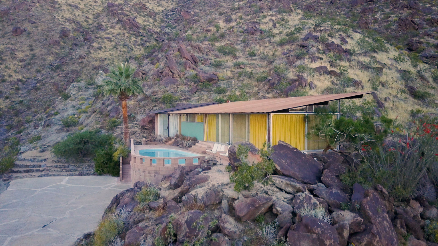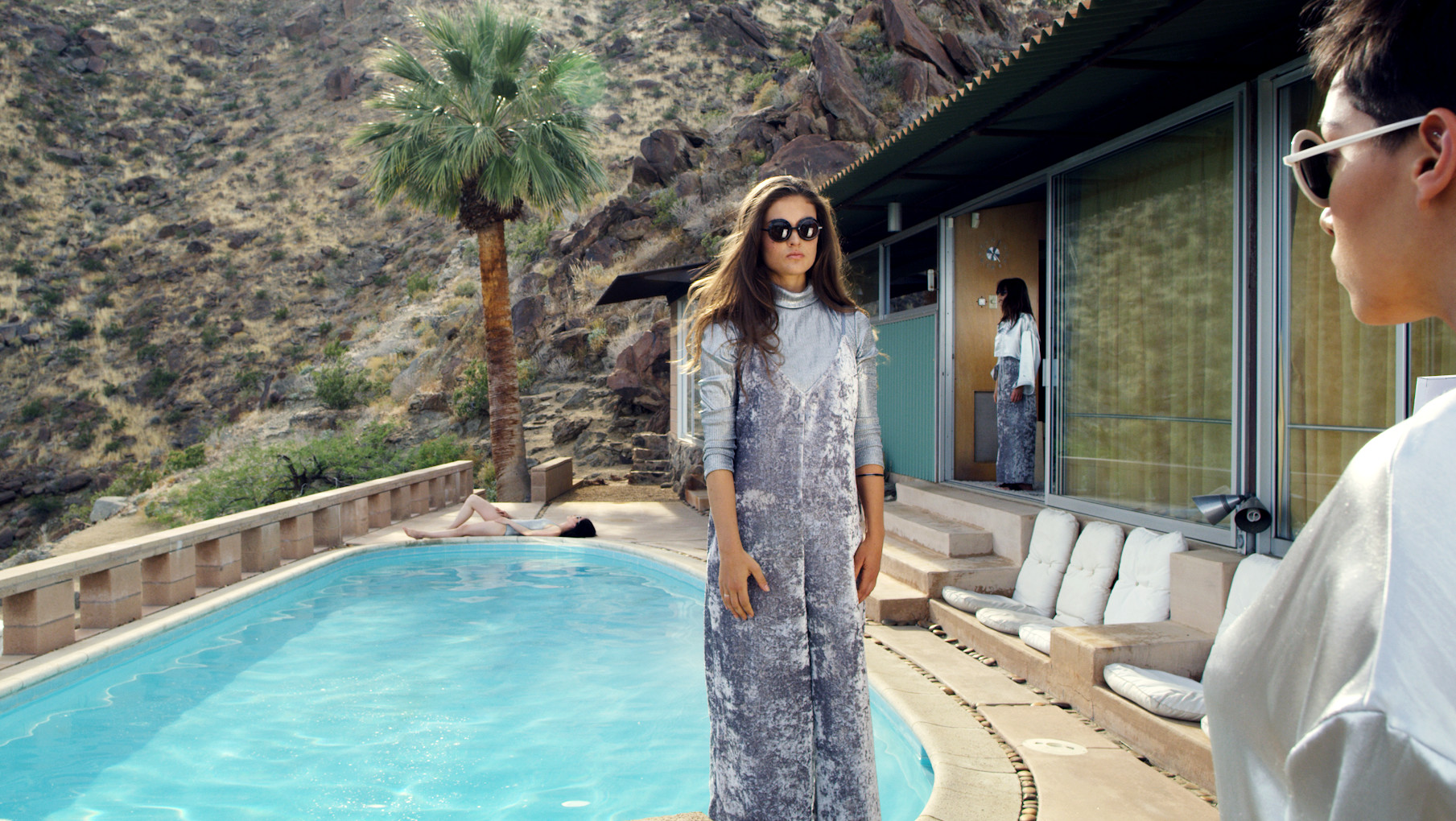These women echo the sensibilities of the early 1960s architecture in which they are trapped – outwardly appearing perfect, but inwardly smothering their imperfections. A carefully considered construction, the Albert Frey House II is a sun-drenched Desert Modernist creation draped amidst the rugged desert landscape. Representative of a new turn in California modernist architecture, the home is a source of inspiration for the choreography of _The Body Dictionary. The era of California Modernism brought the varied west coast landscape indoors, while also putting our private lives on display – hiding non-essentials became crucial to both aesthetic and social survival for decades to come. This concept of hiding our inner turmoil is reflected in the repetitive and antagonizing choreography of the film, permeating our contemporary lives in which we are pressured to conform to standards of beauty, knowledge, and form in lieu of being comfortable in our own skins and spaces.